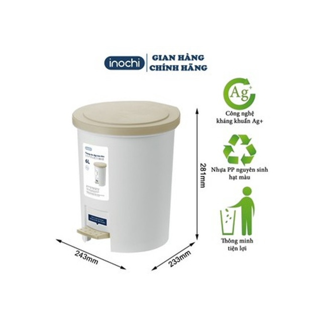 - Phân Loại: Thùng Rác Đạp Chân Nắp Tròn Inochi Cao Cấp, Thùng Đựng Rác Văn Phòng Gia Đình Nắp TrònThùng rác đạp tròn Hiro 6L