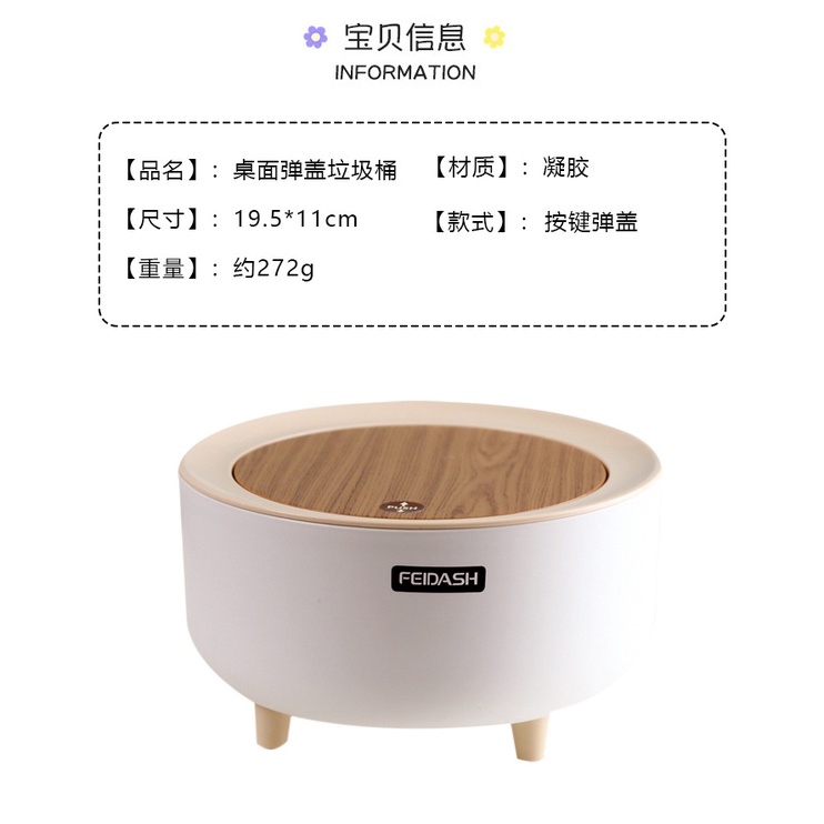 Thông tin sản phẩm: Thùng rác tròn mini nắp bật vân gỗ để bàn học, decor trang trí siêu xinh