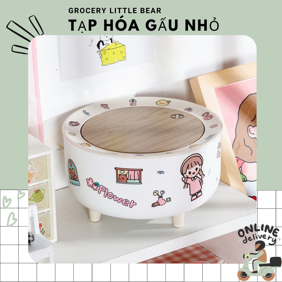 + Thùng rác decor thiết kế mini nhỏ nhắn, có nắp bật tiện lợi