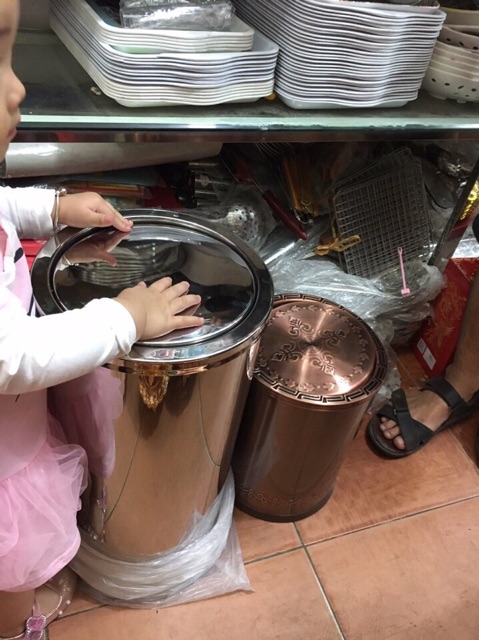-Bên trong thung có thùng đựng rác làm bằng tôn hoa