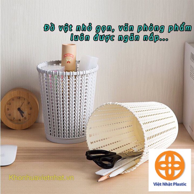 thùng rác văn phòng và gia đình nhựa mây đan phong cách hàn quốc nhựa Việt Nhật | Sọt rác nhựa giả mây