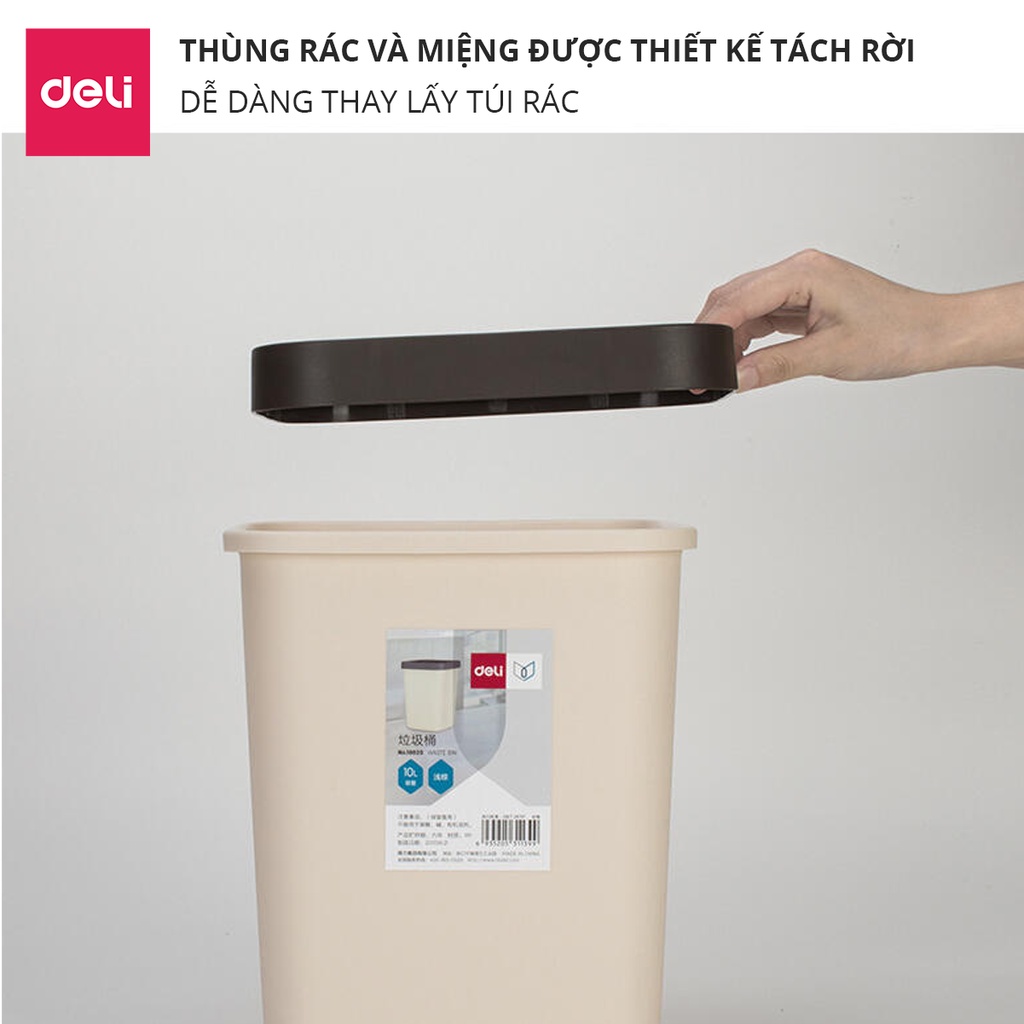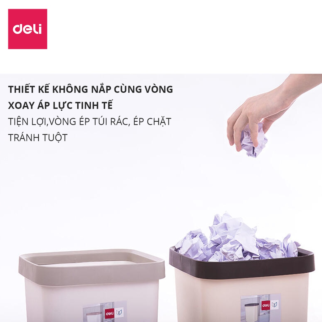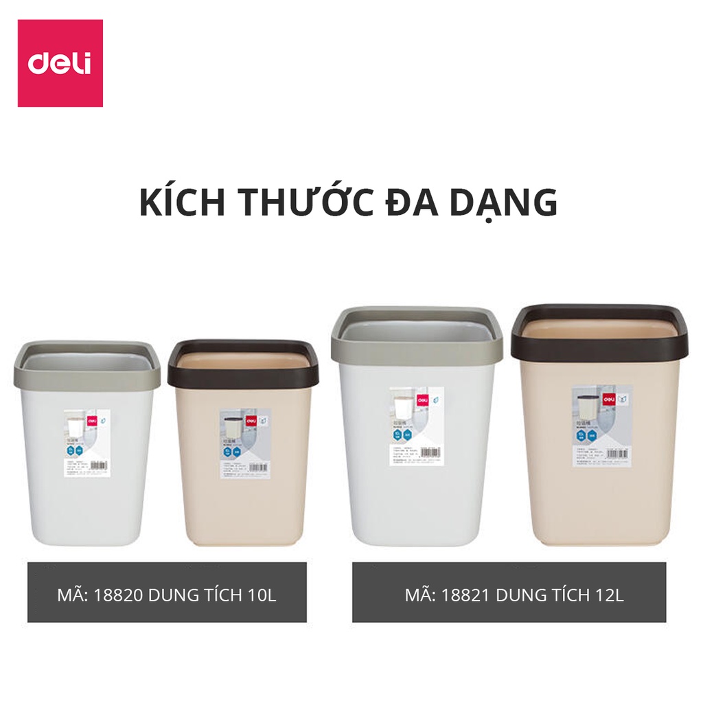 Thùng rác vuông Deli - Dung tích 10l / 12l - Có nẹp giữ túi thông minh, nhựa pp dễ vệ sinh, không bám bẩn - 18820/18821