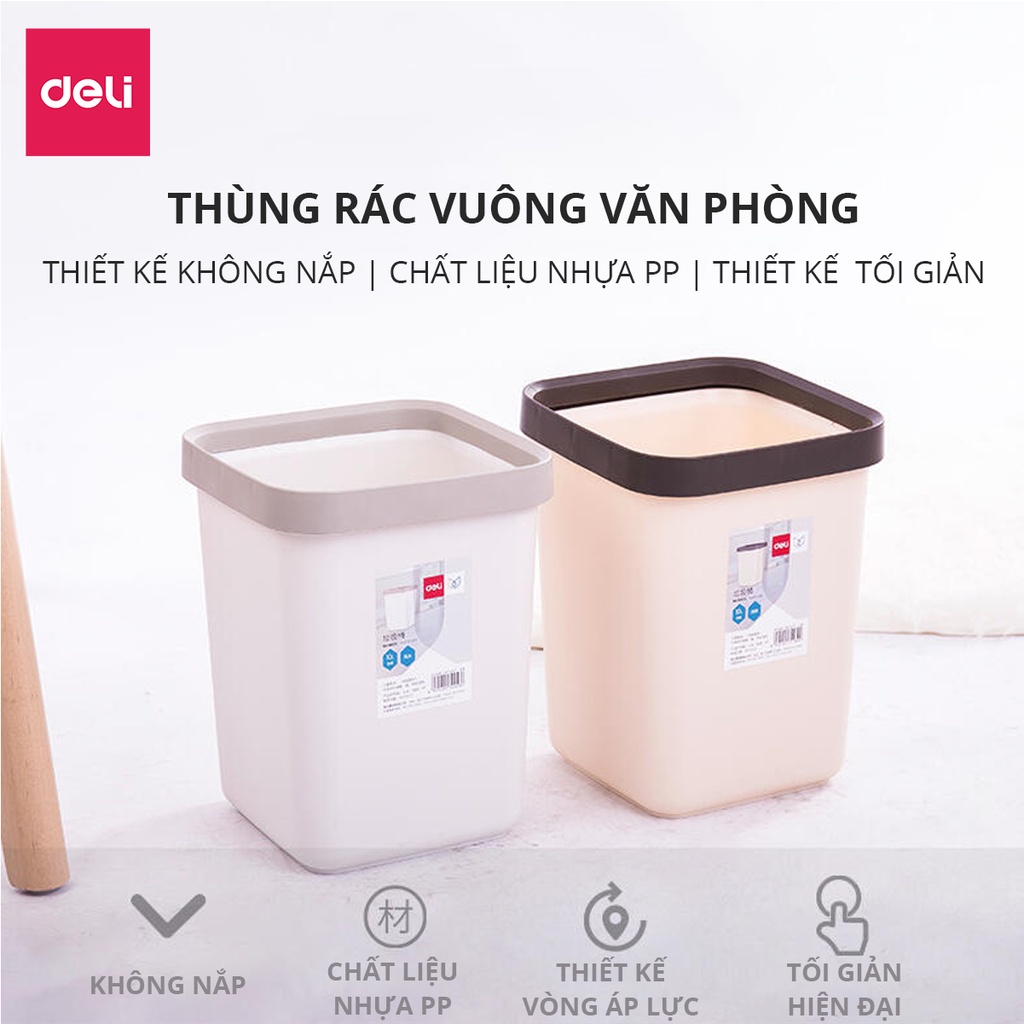 Nhà cửa & Đời sống > Dụng cụ chăm sóc nhà cửa > Thùng rác || Thùng rác vuông Deli - Dung tích 10l / 12l - Có nẹp giữ túi thông minh, nhựa pp dễ vệ sinh, không bám bẩn - 18820/18821Còn hàng
