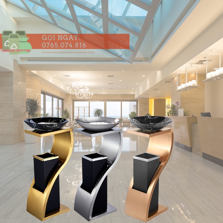 - Thùng rác inox trang trí khách sạn là mẫu thùng rác inox gạt tàn có thiết kế sang trọng với khay gạt tàn thuốc lá phía trên và cửa bỏ rác bên hông rất thuận tiện cho người sử dụng. Với kiểu dáng hình chữ z này thì chiếc thùng rác đã biến thành vật trang trí cho không gian của bạn