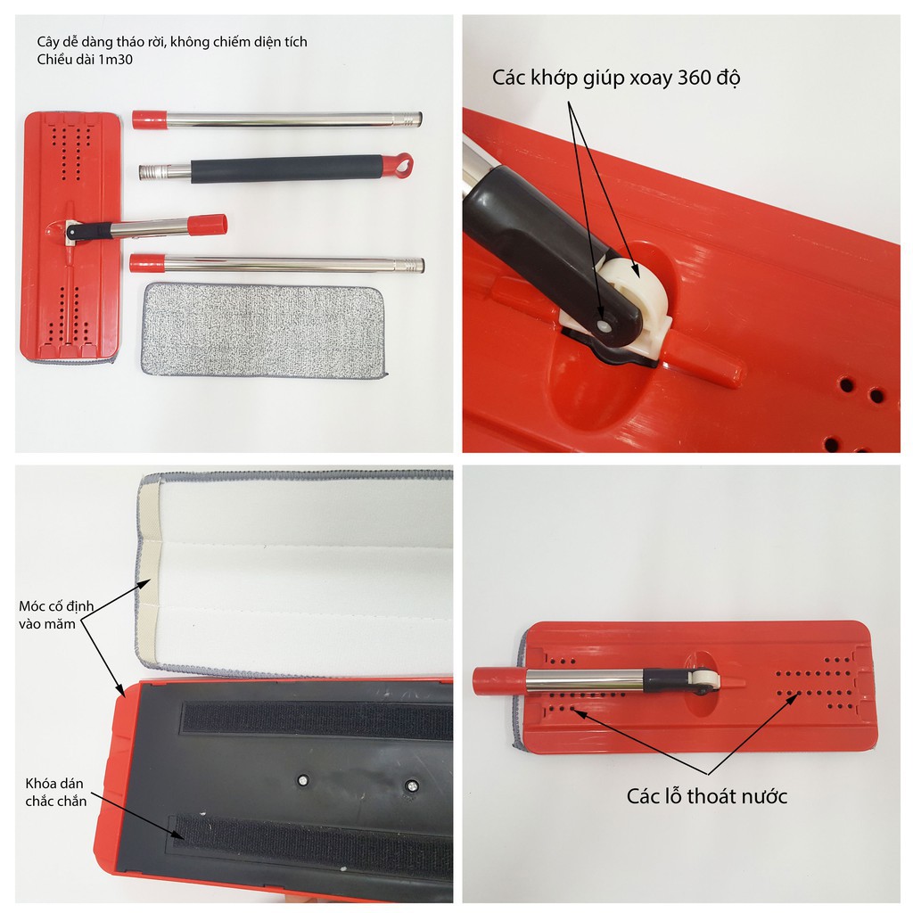 - Thùng 2 ngăn : 1 ngăn vắt khô tự động - 1 ngăn chứa nước để giặt cây lau