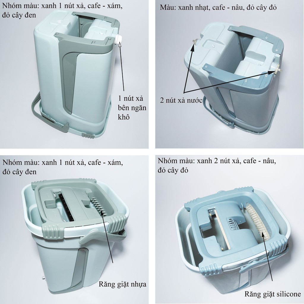 - Thùng nhựa và bàn lau bằng nhựa ABS chắc chắn, dùng bền lâu, không dễ nứt vỡ như các loại nhựa tái sinh rẻ tiền