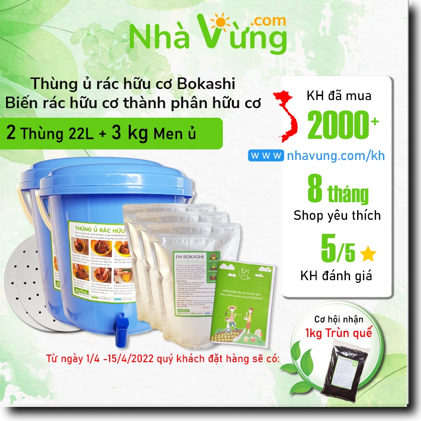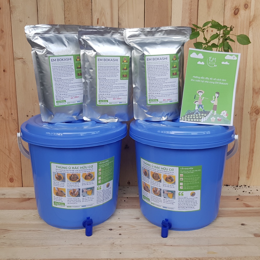 Nhà cửa & Đời sống > Làm vườn > Hạt giống & chất hỗ trợ trồng cây || Thùng ủ rác hữu cơ thành phân hữu cơ EM Bokashi - Nhà Vừng (combo 2 thùng 22L + 3 túi EM Bokashi)Còn hàng