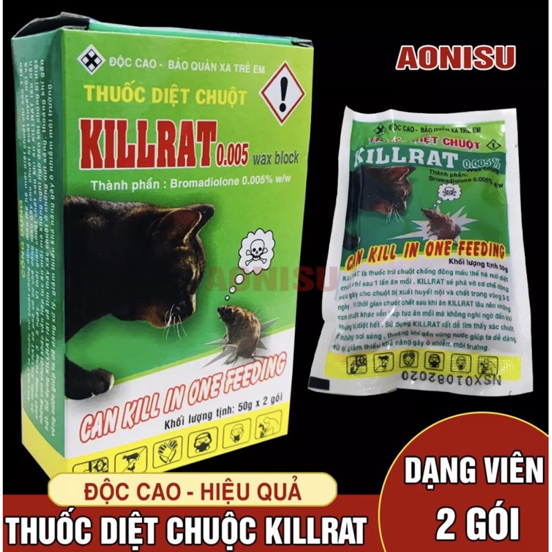 Thuốc Diệt Chuột KILLRAT - Kẹo Diệt Chuột, Diệt Côn Trùng AONISU (hộp 2 gói).