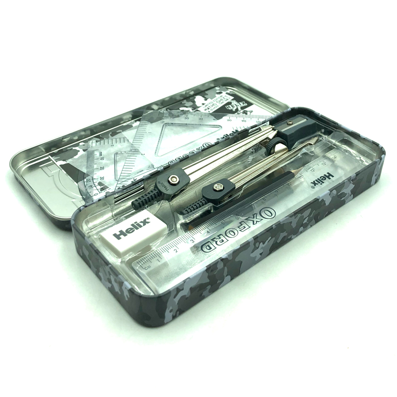 Bộ Thước Camo Helix 170542 - Bạc - Bộ dụng cụ Compa học toán rất hữu ích và tiện lợi dành cho các bạn học sinh. - Bao gồm: 2 compa Helix kèm bút chì gỗ 1 thước thẳng Helix 15cm 1 thước đo độ Helix 1 chuốt chì Helix 1 gôm Helix 2 thước eke Helix 1 bút chì gỗ Helix Sản phẩm của thương hiệu Helix Oxford truyền thống, một thương hiệu cao cấp và đáng tin cậy về chất lượng.