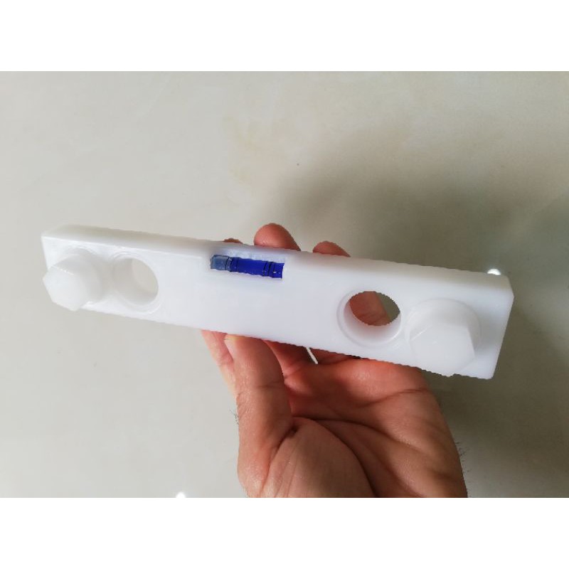 Sản phẩm là vật dụng khá quan trọng đối với thợ điện nước để cân chỉnh khi lắp cố định đường ống với củ sen tắm hay củ vòi rửa được cân và thẩm mỹ đẹp..Sản phẩm được làm từ nhựa trắng sạch cao cấp dễ vệ sinh khi bám vôi vữa, có 4 lỗ tạo 2 cỡ khác nhau, và 2 núm cố định, ở giữa là 1 li vô bằng bọt nước.
