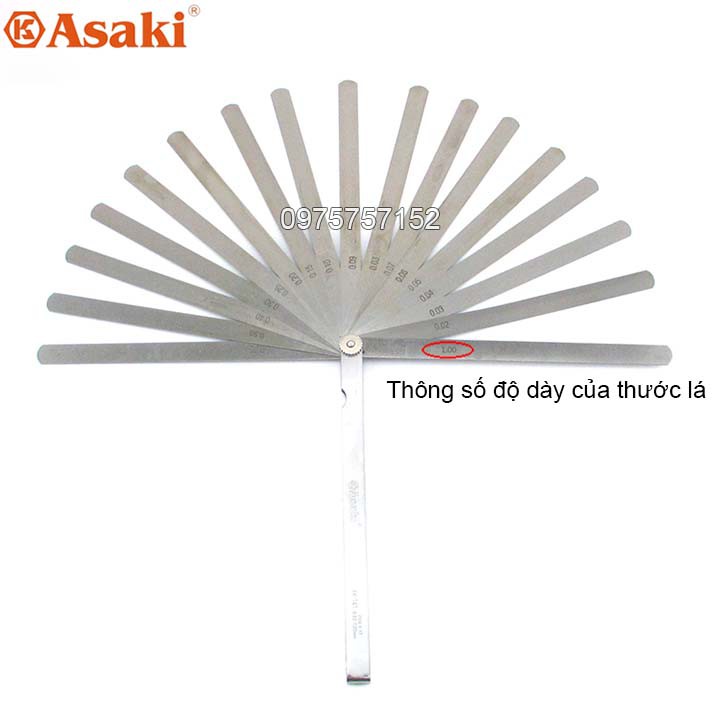 Giới thiệu Thước căn lá - Thước đo khe hở 14 lá 0.05-1.00mm Asaki AK-136 100mm