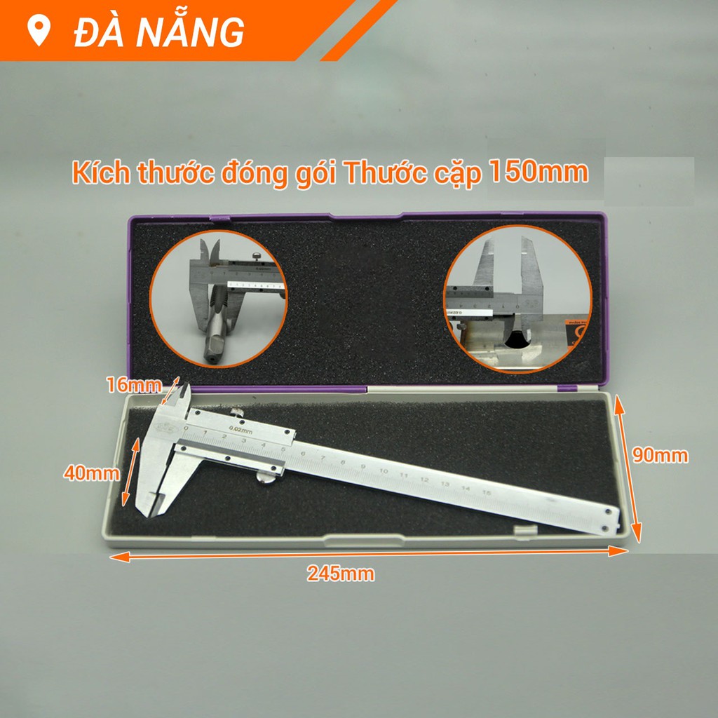Thước đo được kích thước từ 0-150mm, độ sai số là 0.02mm