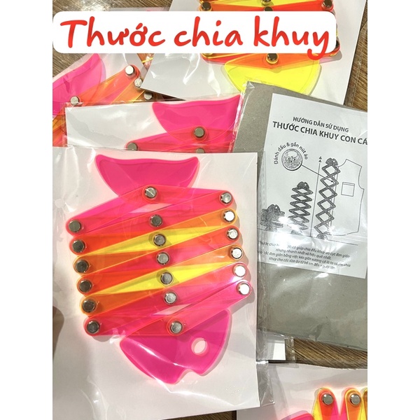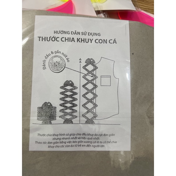 thước chia khuy,thước con cá giúp chia đều khuy áo cực đơn giản nhưng nhanh nhất và hiệu quả nhấtthao tác đơn giản bằng việc kéo giãn xương cá là ta có thể chia khuy cho các size áo từ trẻ em đến người lớn