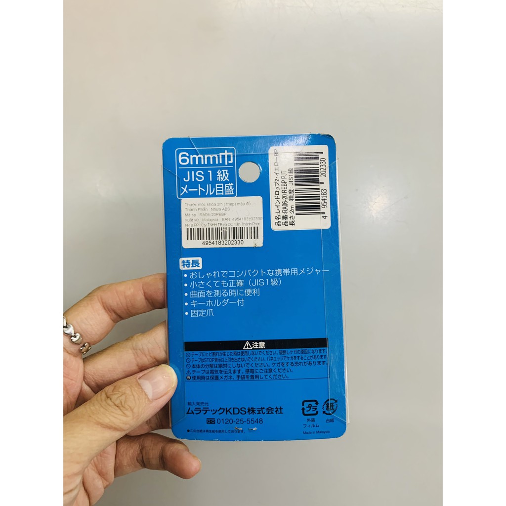 Thước móc khóa 2m RA06-20 có 2 màu vàng và đỏ cho bạn lựa chọn, tương ứng với 2 mã hàng là RA06-20YEBP và RA06-20REBP. Thước có móc khóa bạn có thể treo ở chìa khóa hay túi quần, rất dễ dàng mang theo khi thước nhỏ gọn.