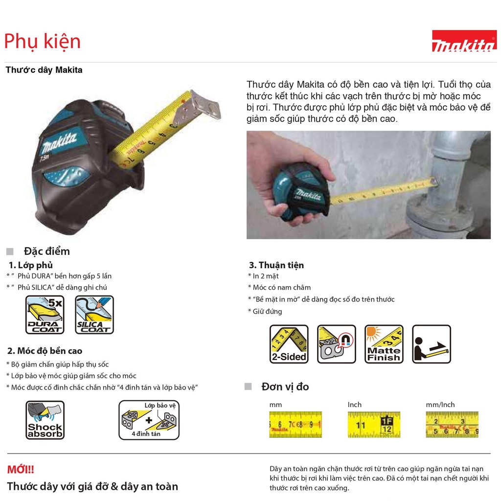Thước dây Makita có độ bền cao và tiện lợi. Tuổi thọ của