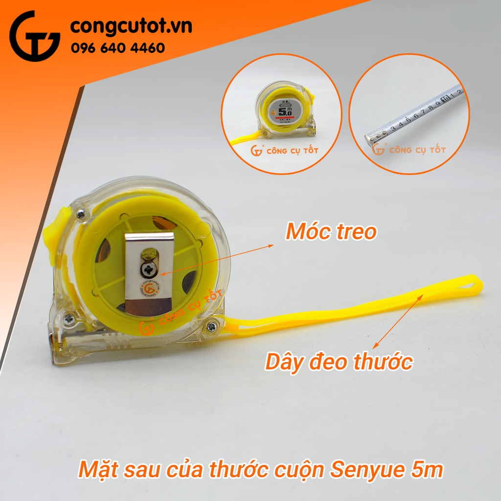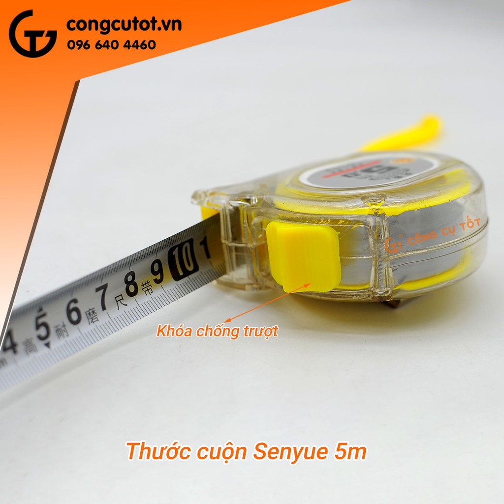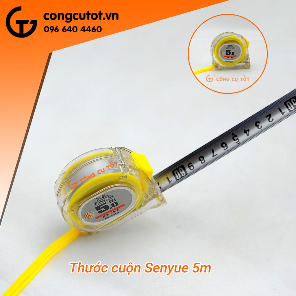 Thước cuộn được làm từ hợp kim thép cao cấp, có kích thước nhỏ gọn, tiện lợi. Là sản phẩm có độ chính xác cao, chuyên dụng để đo đạc công trình hoặc sử dụng trong gia đình... giúp bạn hoàn thành công việc một cách nhanh chóng và hiệu quả tối ưu.Thước cuộn Senyue 5m có dây thước bằng hợp kim thép, có thể kéo dài để đo đến 5m.
