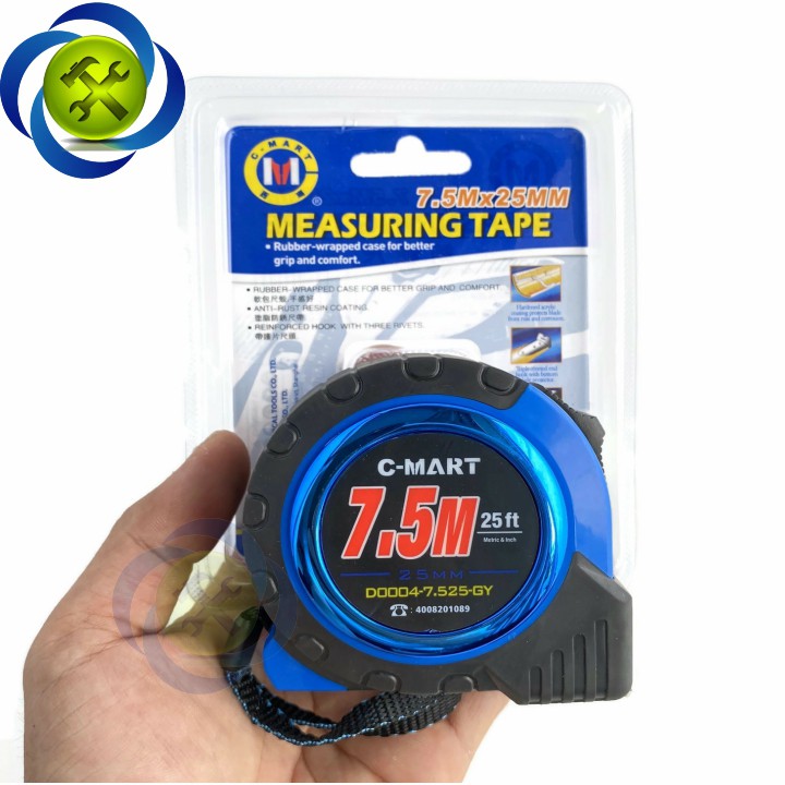 Nhà cửa & Đời sống > Dụng cụ & Thiết bị tiện ích > Dụng cụ > Dụng cụ đo lường || Thước cuộn 7.5m C-Mart D0004-7.525-GY bọc nhựa chống va đậpCòn hàng