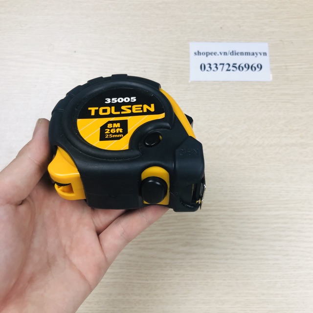 #Thước cuộn bọc cao su 8m Tolsen mã số 35005 sản xuất từ chất liệu nhựa và thép bọc cao su chống va đập , gọn nhẹ với độ bền cao được sử dụng cho việc đo đạc vv.......* Thông tin thương hiệu - Tolsen là một thương hiệu nổi tiếng ở Châu Âu, các sản phẩm của Tolsen được sử dụng rộng rãi tại các nước trên thế giới bao gồm cả Bắc Mỹ, Châu Mỹ La Tinh, Trung Đông …, với nhà máy sản xuất tại China, nên giá thành sản phẩm có ưu thế dễ chấp nhận hơn các sản phẩm tương tự nhưng sản xuất tại các quốc gia khác, bảm bảo tuyệt đối, đạt đầy đủ tiêu chuẩn và chất lượng cho thị trường Châu Âu. - Dụng cụ Tolsen chuyên cung cấp các mặt hàng như: dụng cụ cơ khí, vật dụng PPE, dụng cụ chuyên dụng cho ngành điện, vật dụng đo lường, túi đựng chuyên dụng... Các sản phẩm của Tolsen đều trải qua quá trình nghiên cứu kỹ lưỡng trước khi đưa vào sản xuất, đáp ứng đầy đủ các tiêu chuẩn về mặt vật liệu, thiết kế, tính ứng dụng, giá cả. Tiếp đó, đội ngũ chuyên viên sẽ tiến hành kiểm tra nghiêm ngặt chất lượng sản phẩm đầu ra về các yếu tố như: độ cứng, vật liệu cách nhiệt, mẫu mã sản phẩm, khả năng cắt... trước khi đưa vào thị trường, đặc biệt là quá trình thử nghiệm về độ chống gỉ cao. Công nghệ sản xuất hiện đại và được cải tiến liên tục nhằm đem đến cho khách hàng của Tolsen những mặt hàng dụng cụ cầm tay đạt chuẩn, cải thiện chất lượng công việc một cách tối ưu. Dụng cụ Tolsen ngày càng cung cấp nhiều sản phẩm đa dạng và phong phú hơn.