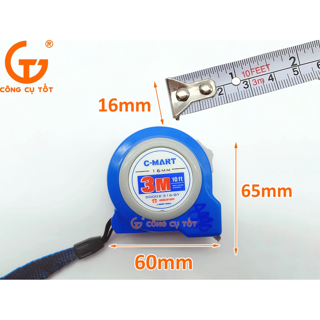 Giới thiệu Thước cuộn Cmart 3m khổ 16mm D0002-316 Đài Loan