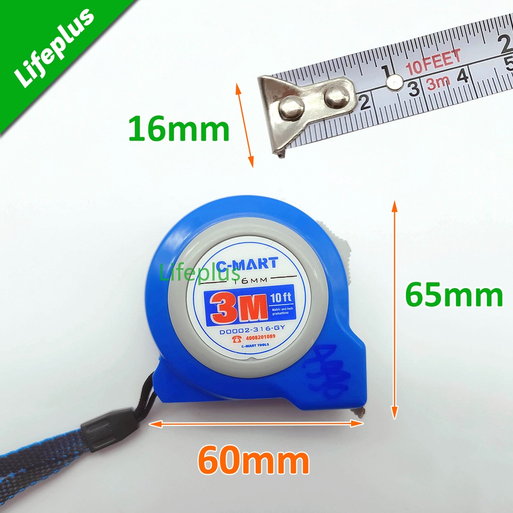 Nhà cửa & Đời sống > Dụng cụ & Thiết bị tiện ích > Dụng cụ > Dụng cụ đo lường || Thước cuộn Cmart 3m khổ 16mm D0002-316 Đài LoanCòn hàng