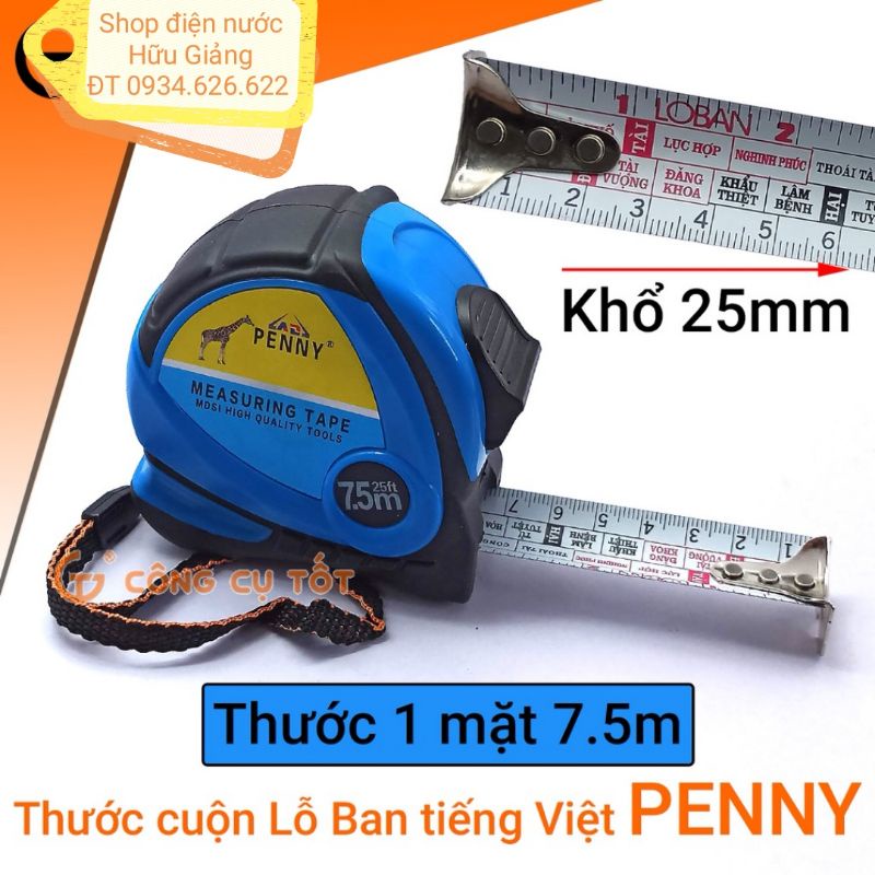 Nhà cửa & Đời sống > Dụng cụ & Thiết bị tiện ích > Dụng cụ > Dụng cụ đo lường || Thước cuộn công trường Penny 5 mét, 7,5 mét khổ 25mm bọc cao su chịu va đậpCòn hàng