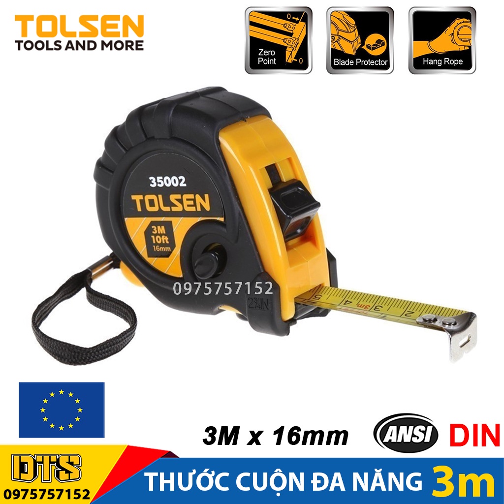 👷 Thước cuộn đa năng 3m TOLSEN, thước kéo thép khóa 3 trong 1 nền vàng vỏ ABS chống va đập phủ TPR – Tiêu chuẩn châu Âu👷Được nhập khẩu và phân phối chính hãng bởi DTS