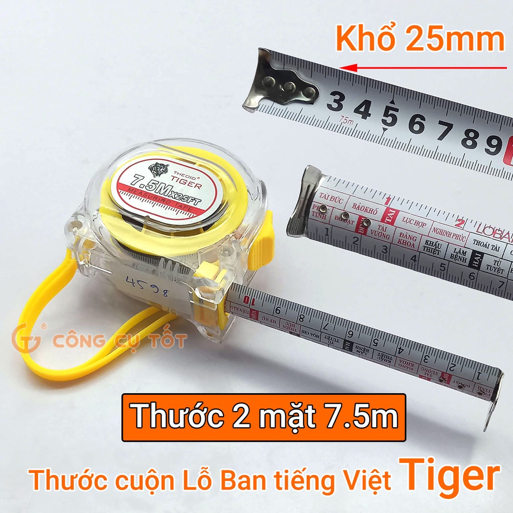 Nhà cửa & Đời sống > Dụng cụ & Thiết bị tiện ích > Dụng cụ > Dụng cụ đo lường || Thước cuộn Lỗ Ban tiếng Việt TigerCòn hàng