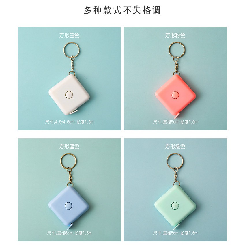 Thước cuộn mini dài 1,5m gọn nhẹ, tiện lợi, có móc treo lên tiết kiệm diện tích hoặc có thể dùng làm móc khóa- 2 mẫu: hình tròn và hình vuông