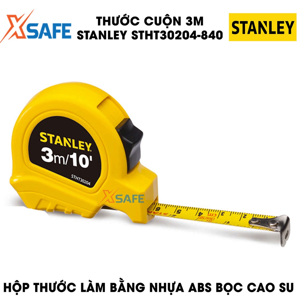 Thước cuộn STANLEY STHT30204-840 thép dẻo dài 3m Thước cuộn cầm tay vỏ nhựa ABS bọc cao su bền bỉ, cao cấp - Chính hãng
