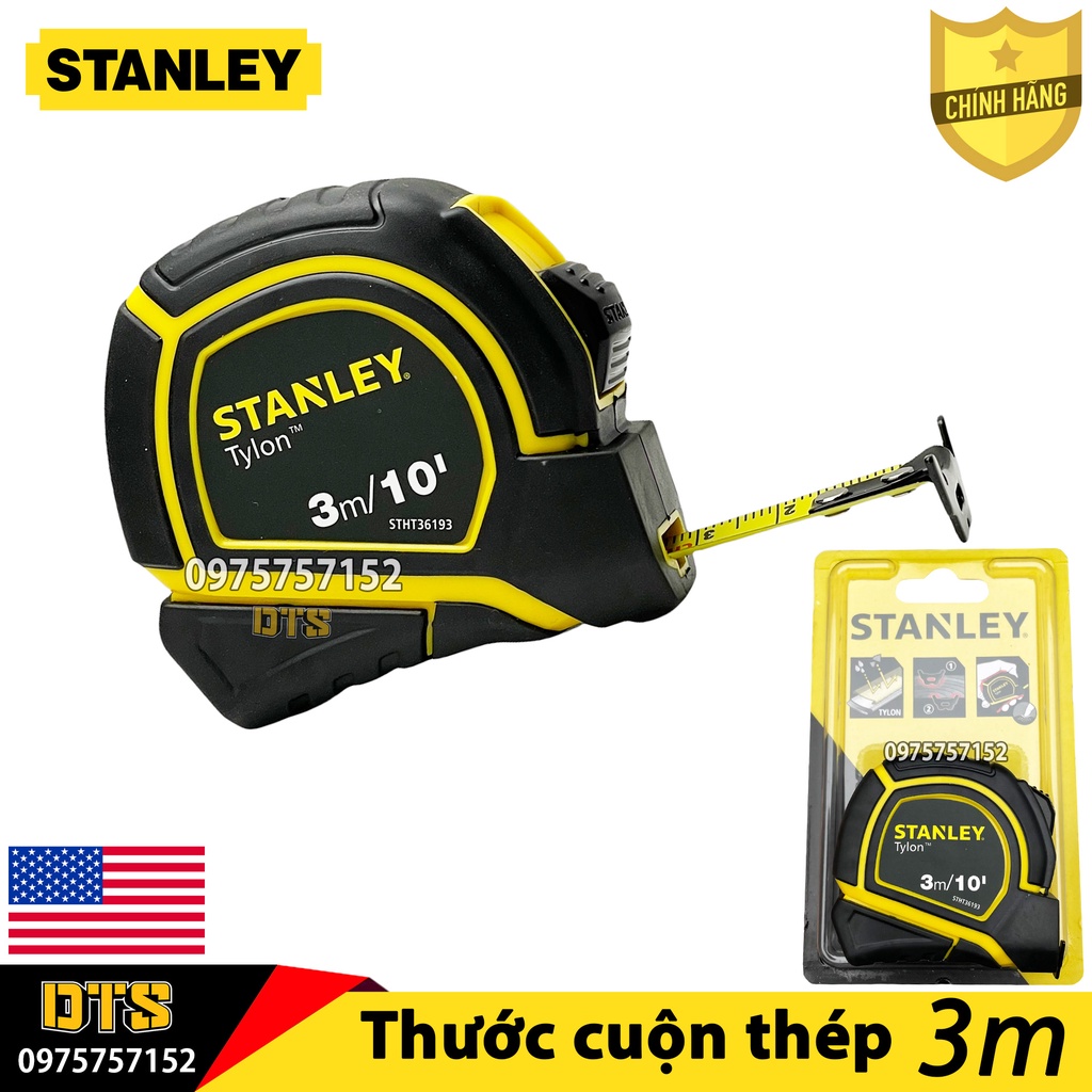 Thước cuộn thép 3m TYLON hãng STANLEY Mỹ, thước kéo nền vàng lưỡi phủ NYLON rõ nét, vỏ bọc nhựa ABS chống va đập, bền bỉĐược nhập khẩu và phân phối chính hãng bởi DTS