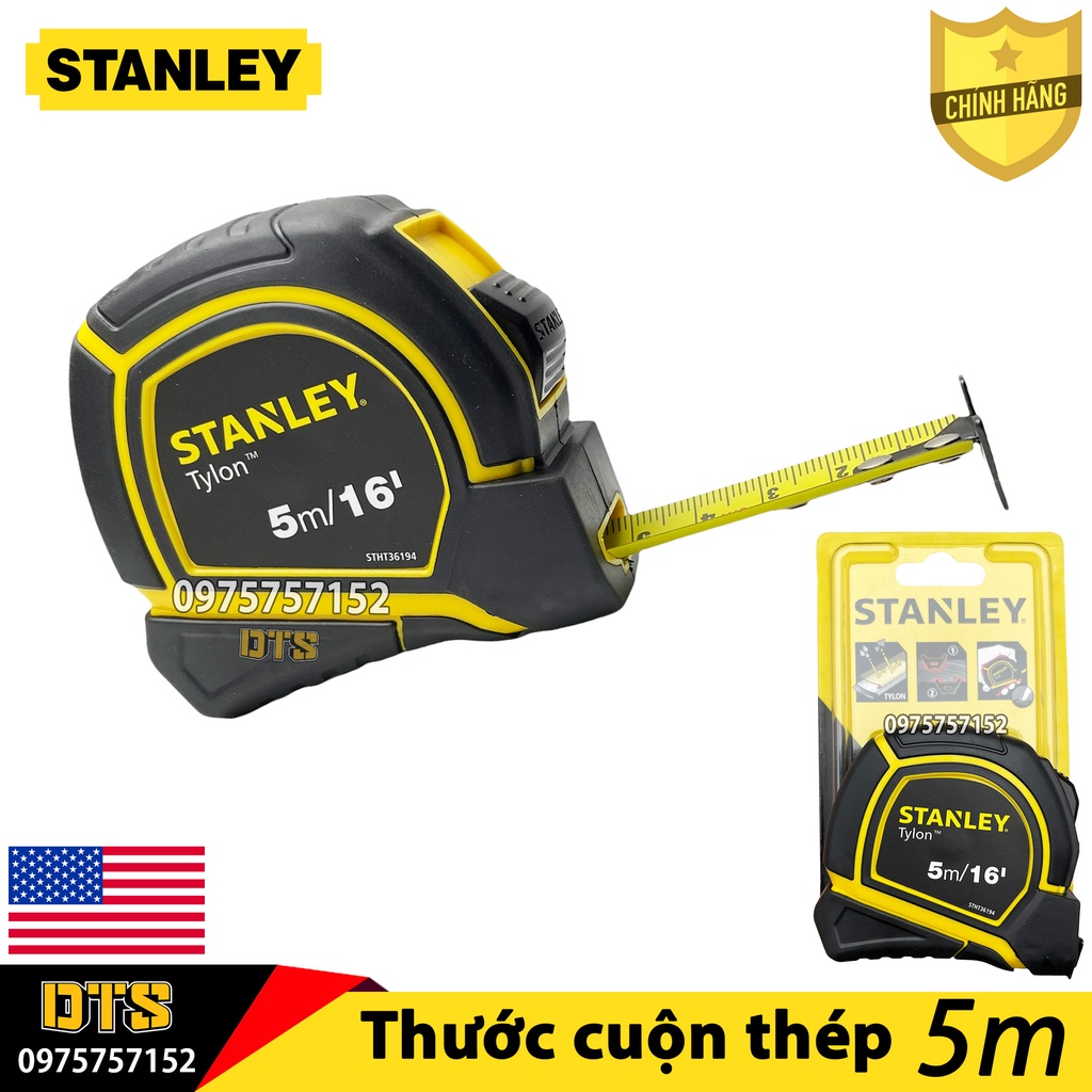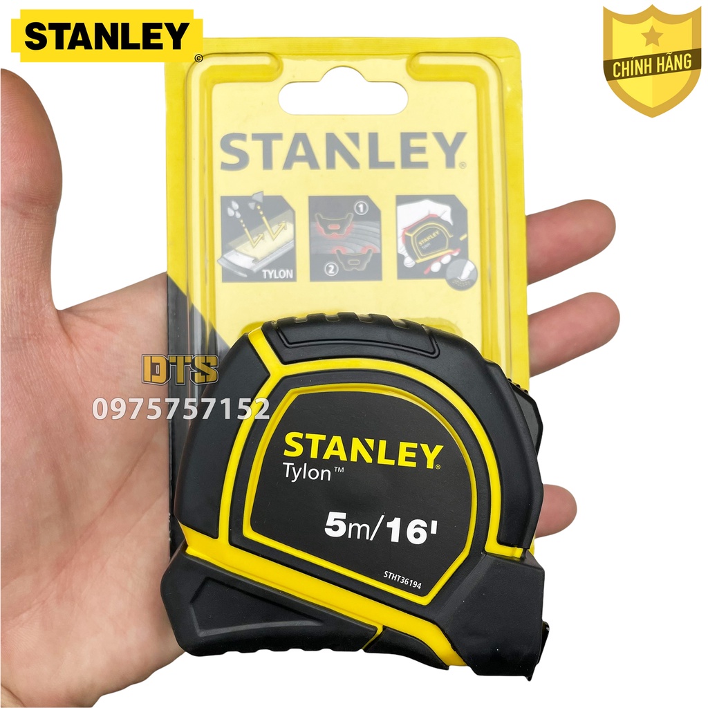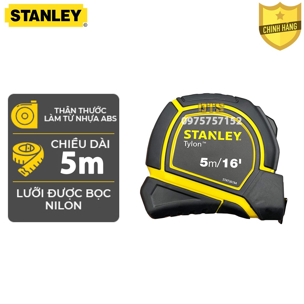 Thước cuộn thép 5m TYLON hãng STANLEY Mỹ, thước kéo nền vàng lưỡi phủ NYLON rõ nét, vỏ bọc nhựa ABS chống va đập, bền bỉĐược nhập khẩu và phân phối chính hãng bởi DTS
