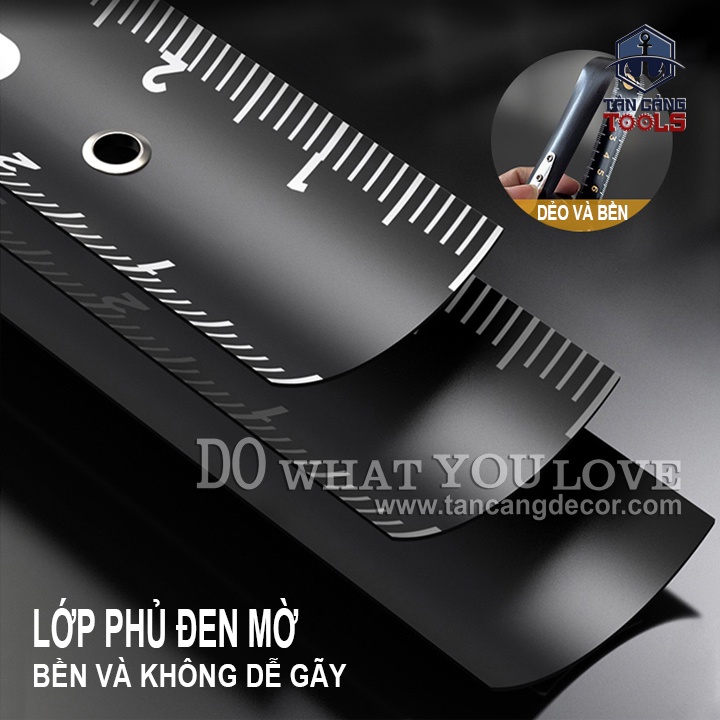 - Thước được sản xuất từ chất liệu cao cấp bền bỉ gia cố cao su chống rơi vở, bề mặt được sơn bằng phủ Nylon đặc biệt hạn chế bị trầy, bong tróc và độ dày thước lên đến gần 0.2 mm hạn chế trầy sướt tay khi sử dụng.