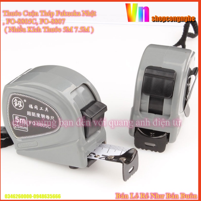 Nhà cửa & Đời sống > Dụng cụ nhà bếp > Dụng cụ đo lường || Thước Cuộn Thép Fukuoka Nhật, FO-8805C, FO-8807 ( Nhiều Kích Thước 5M 7.5M )Còn hàng