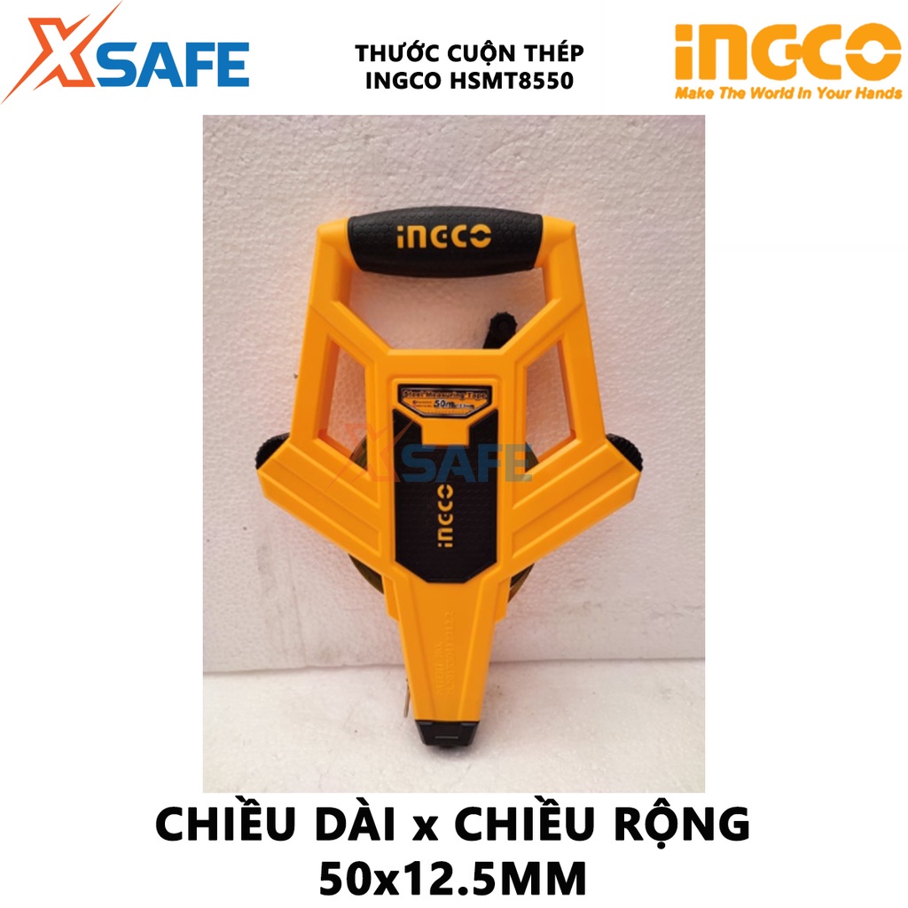 Thước cuốn thép INGCO HSMT8550 Thước cuộn thép dài 50m, chất liệu thép cao cấp chịu nhiệt, chịu lực, chống gỉ - [XSAFE]