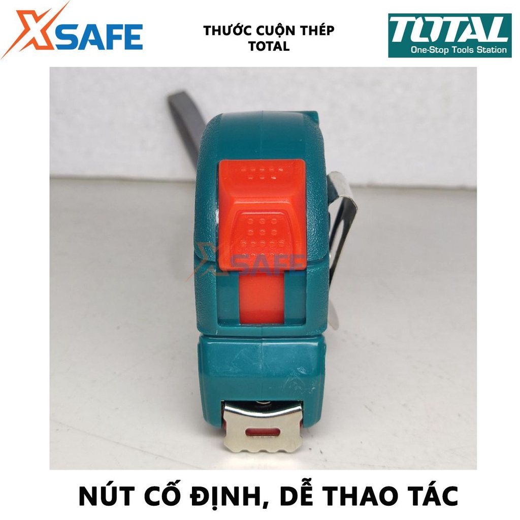 - Thước cuộn thép Total luôn tạo cảm giác thoải mái cho người sử dụng, với lá thước thiết kế cuộn trong hộp nên rất gọn gàng, không làm rối thước. Sản phẩm có kiểu dáng nhỏ gọn, giúp người thợ sử dụng đo đạc ở nhiều nơi chật hẹp, khó di chuyển. Thước là người bạn đồng hành không thể thiếu trong các ngành công nghiệp, xây dựng, mộc, lắp đặt….