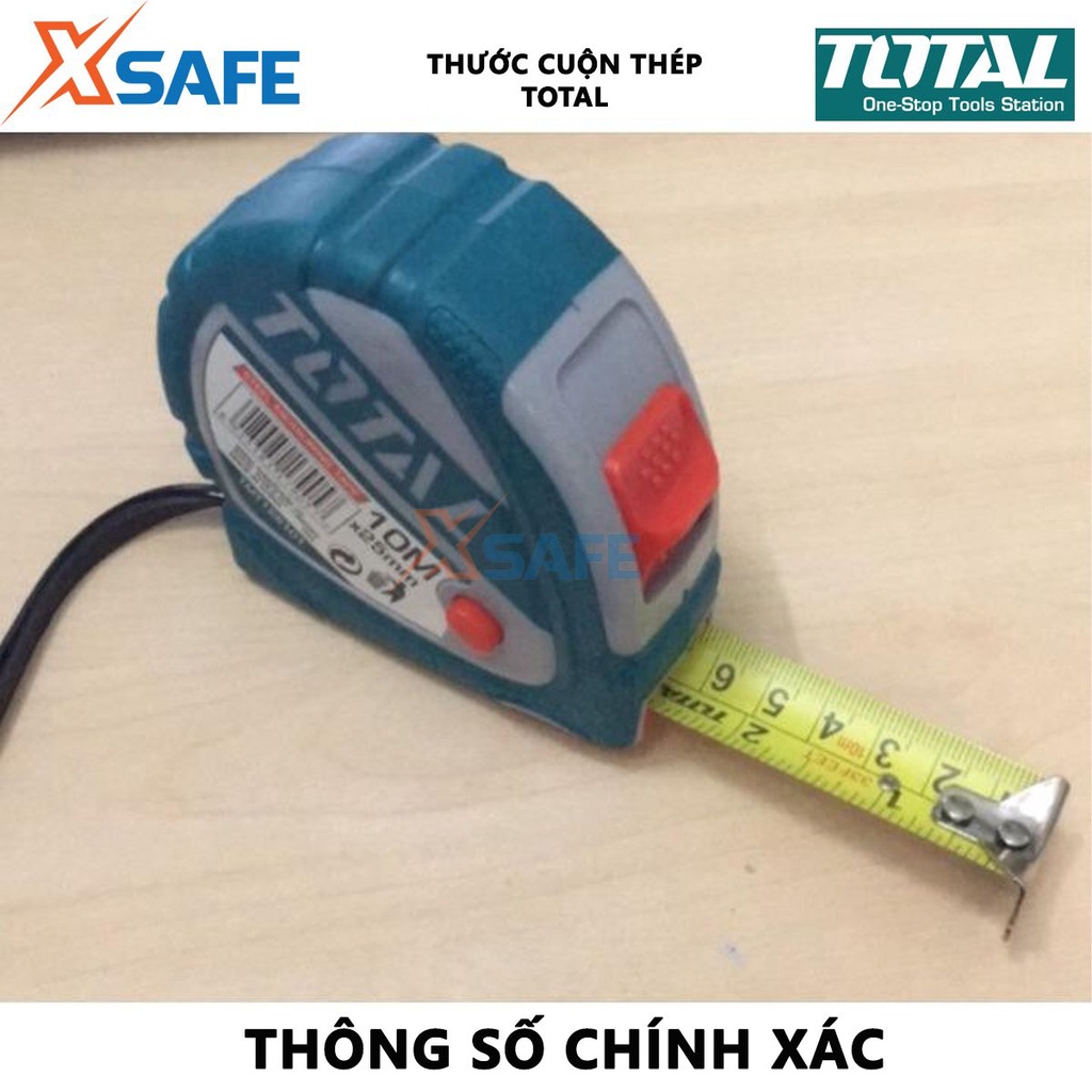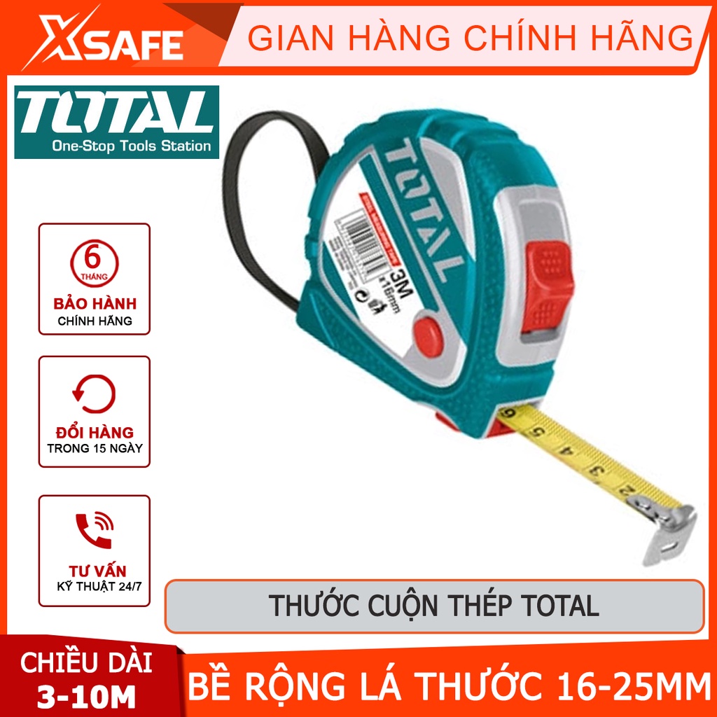 - Thước cuộn thép Total luôn tạo cảm giác thoải mái cho người sử dụng, với lá thước thiết kế cuộn trong hộp nên rất gọn gàng, không làm rối thước. Sản phẩm có kiểu dáng nhỏ gọn, giúp người thợ sử dụng đo đạc ở nhiều nơi chật hẹp, khó di chuyển. Thước là người bạn đồng hành không thể thiếu trong các ngành công nghiệp, xây dựng, mộc, lắp đặt….