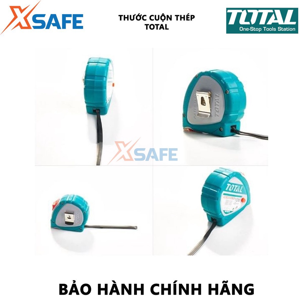 - Phần đầu dây thước được tích hợp khóa kim loại, giúp dễ dàng kéo ra khi đo, thật tiện dụng! Thước cuốn thép Total sử dụng thang đo hệ mét và inch, chi tiết và số đo được in rõ ràng trên lá thước, cho người dùng dễ dàng đọc kết quả đo.