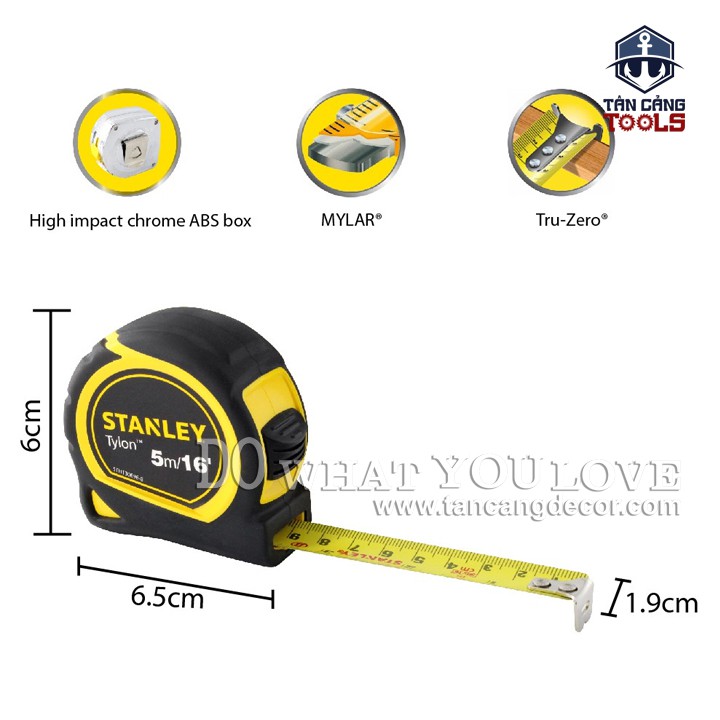 - Thước cuộn thép TYLON 5M/19mm Stanley STHT30696-8 là dòng thước cao cấp với nhiều tính năng ưu điểm hơn so với dòng thước thị trường.