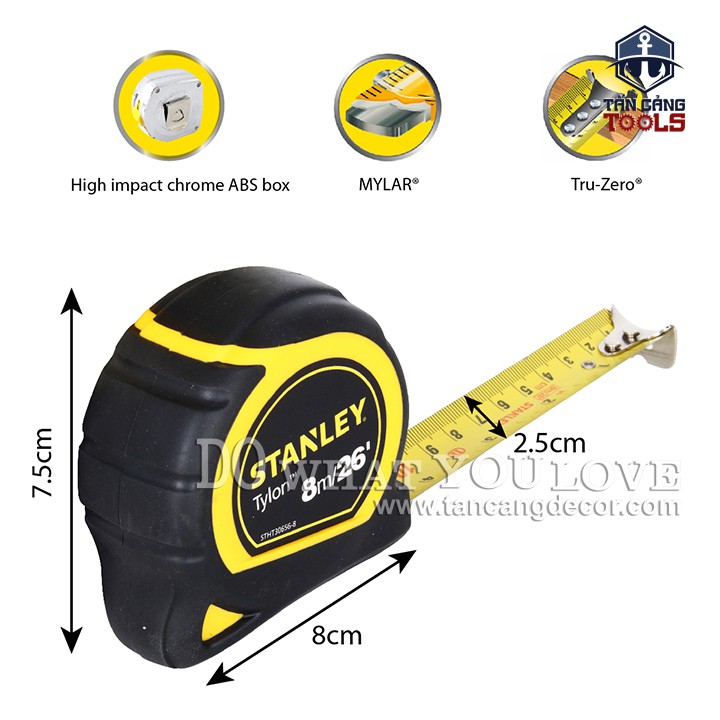 - Thước cuộn thép TYLON 8M-25mm Stanley STHT30656-8 là dòng thước cao cấp với nhiều tính năng ưu điểm hơn so với dòng thước thị trường.