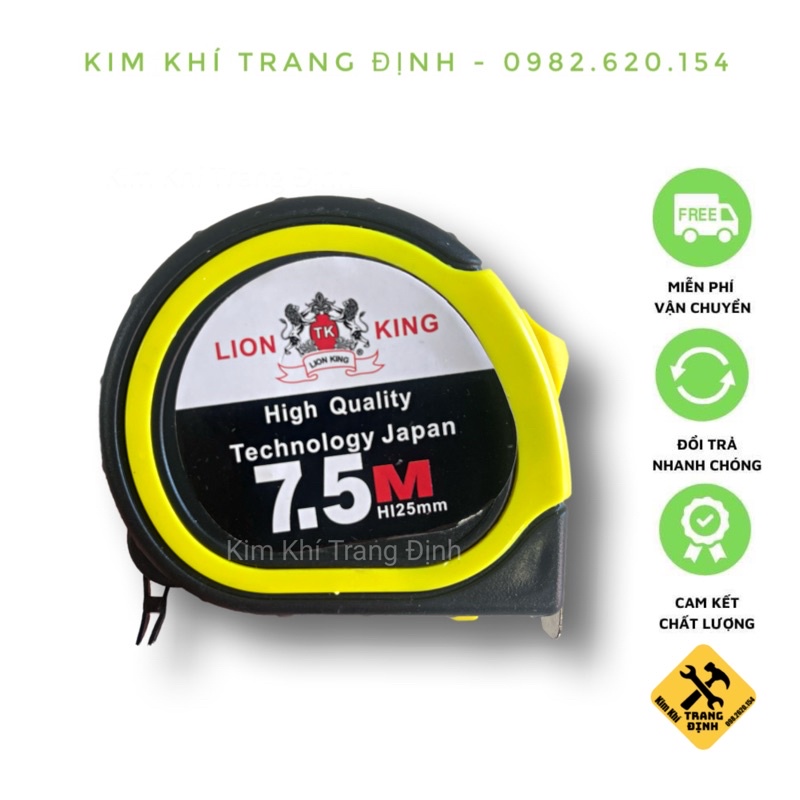 Nhà cửa & Đời sống > Dụng cụ & Thiết bị tiện ích > Dụng cụ > Dụng cụ đo lường || Thước cuộn, thước rút thép 7,5m x 25mm Lionking cao cấpCòn hàng