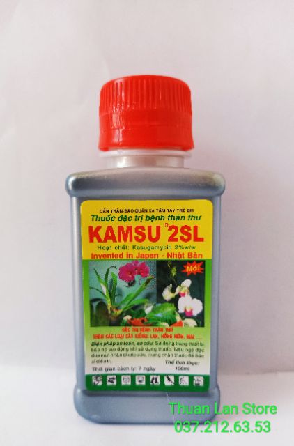 Thuốc Đặc Trị Bệnh Thán Thư Kamsu 2SL Cho Hoa Lan Cây Cảnh - Chai 100mlKamsu 2SL là thuốc đặc trị bệnh thán thư trên các loại cây kiểng: hoa phong lan, hồng môn, mai,…