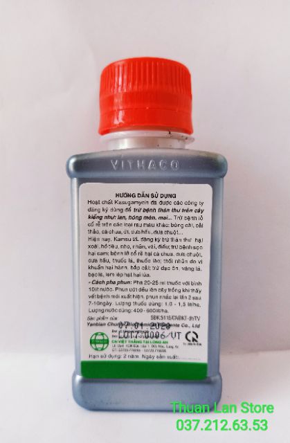 Thành phần Thuốc đặc trị bệnh thán thư Kamsu 2SL: Hoạt chất Kasugamycin 2%w/w.