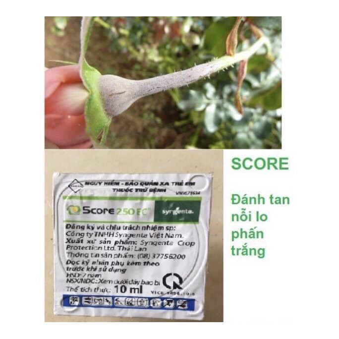 Giới thiệu Thuốc đặc trị phấn trắng , đốm lá trên hoa cây cảnh Score 250 EC 10ml