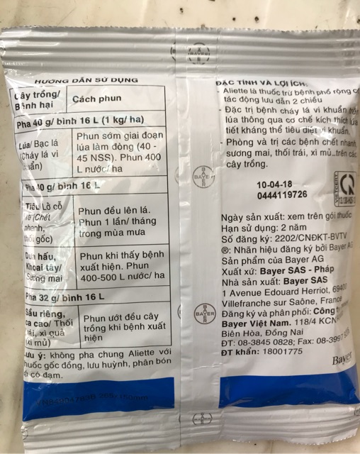Thuốc đặc trị vi khuẩn , trừ bệnh hoa lan - vi khuẩn Aliette - 100gr ( lưu dẫn 2 chiều ).