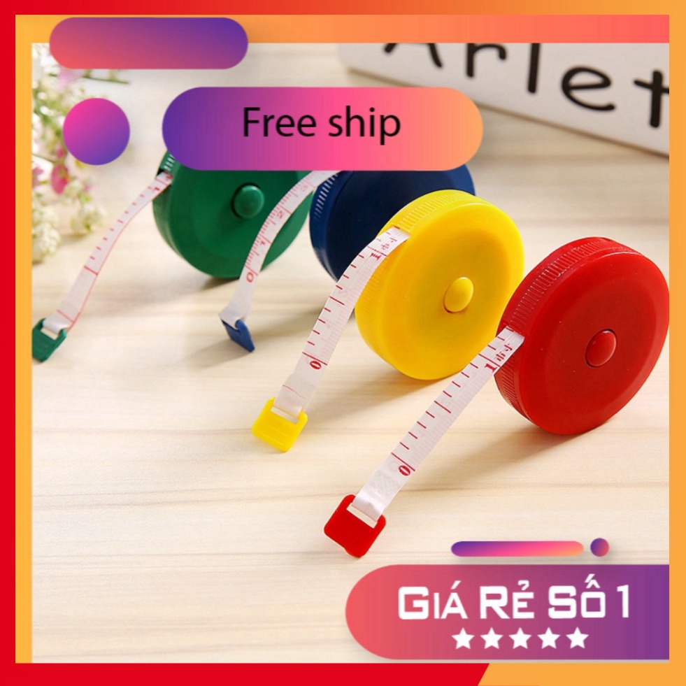 Thước Dây Cuộn Rút Thu Tự Động HỘP TRÒN 1.5 Mét - Đo Eo, Vòng Bụng Sức Khỏe