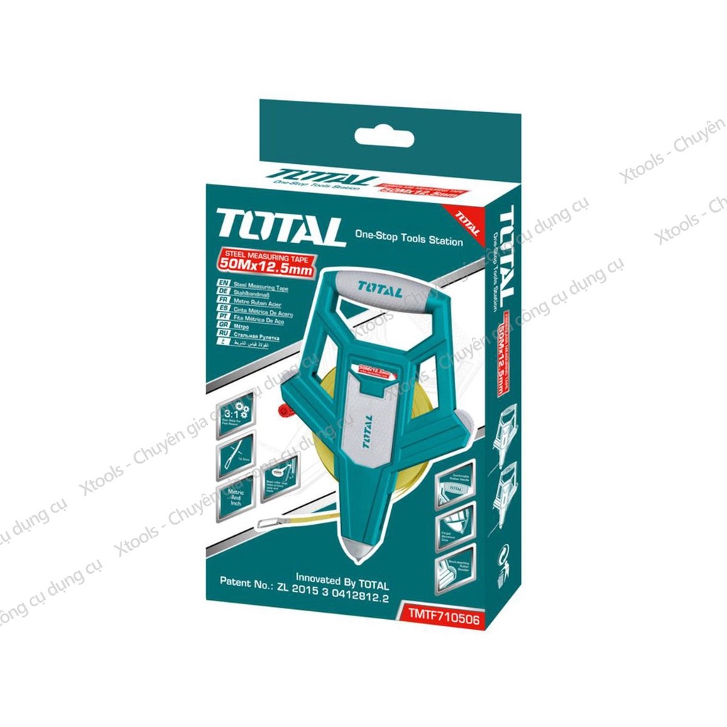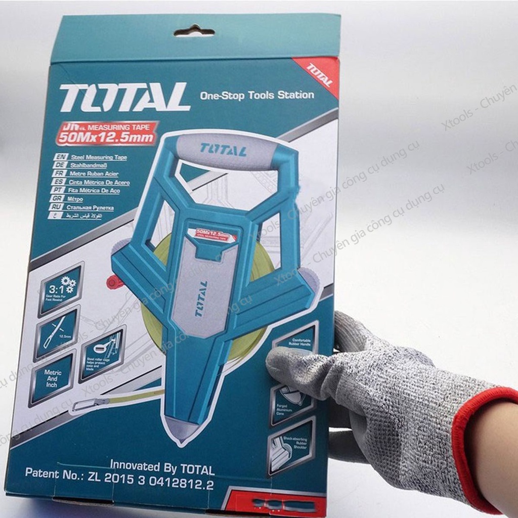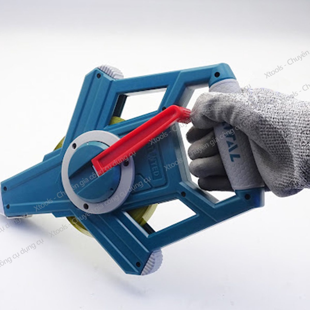 Giới thiệu Thước dây cuộn sợi thủy tinh TOTAL TMTF12506 50m, thước cuốn đa năng vỏ nhựa ABS bọc cao su siêu bền, tốc độ cuốn nhanh