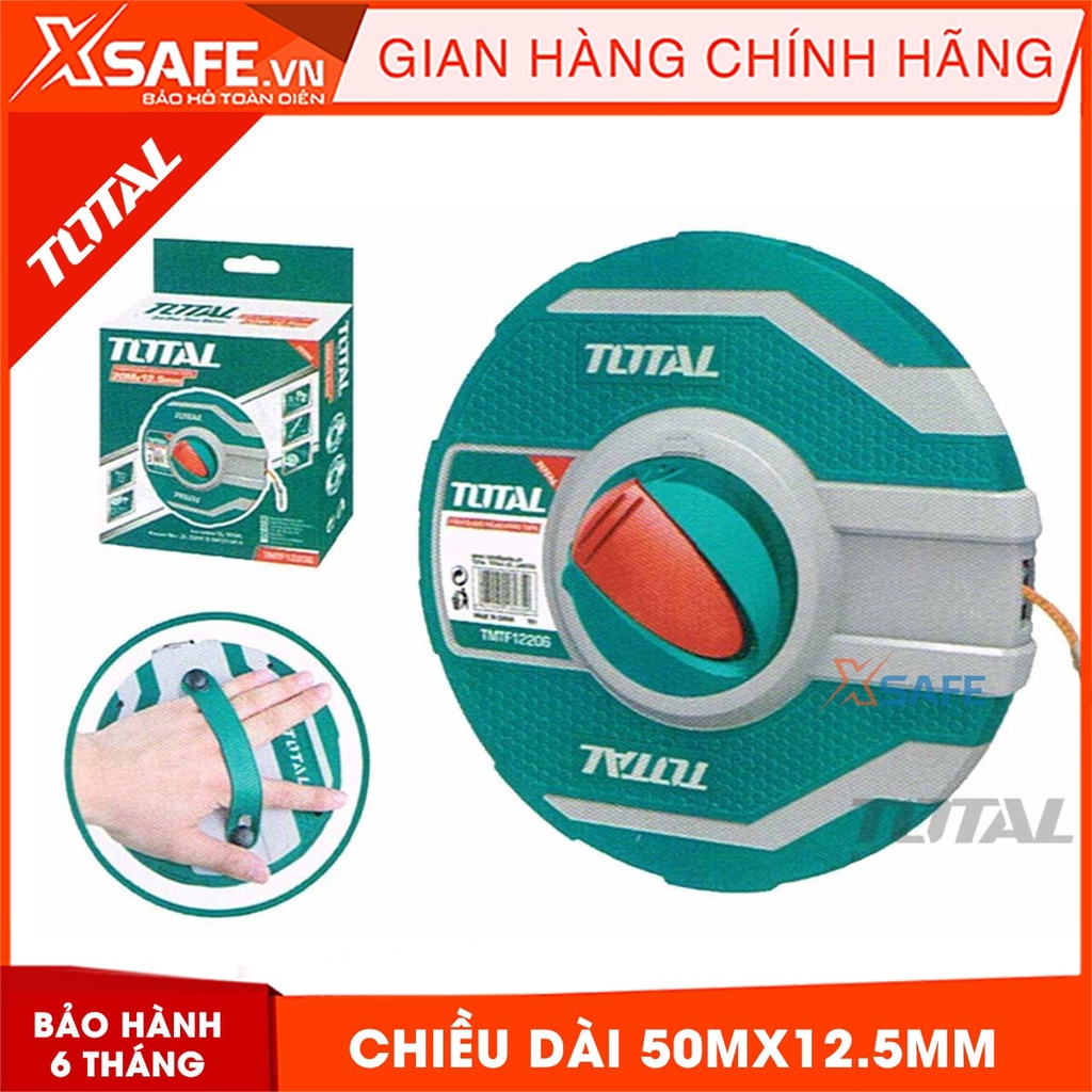 Thước dây cuộn sợi thủy tinh TOTAL 20-30mx12.5mm, thước cuốn đa năng vỏ nhựa ABS bọc cao su siêu bền, tốc độ cuốn nhanh