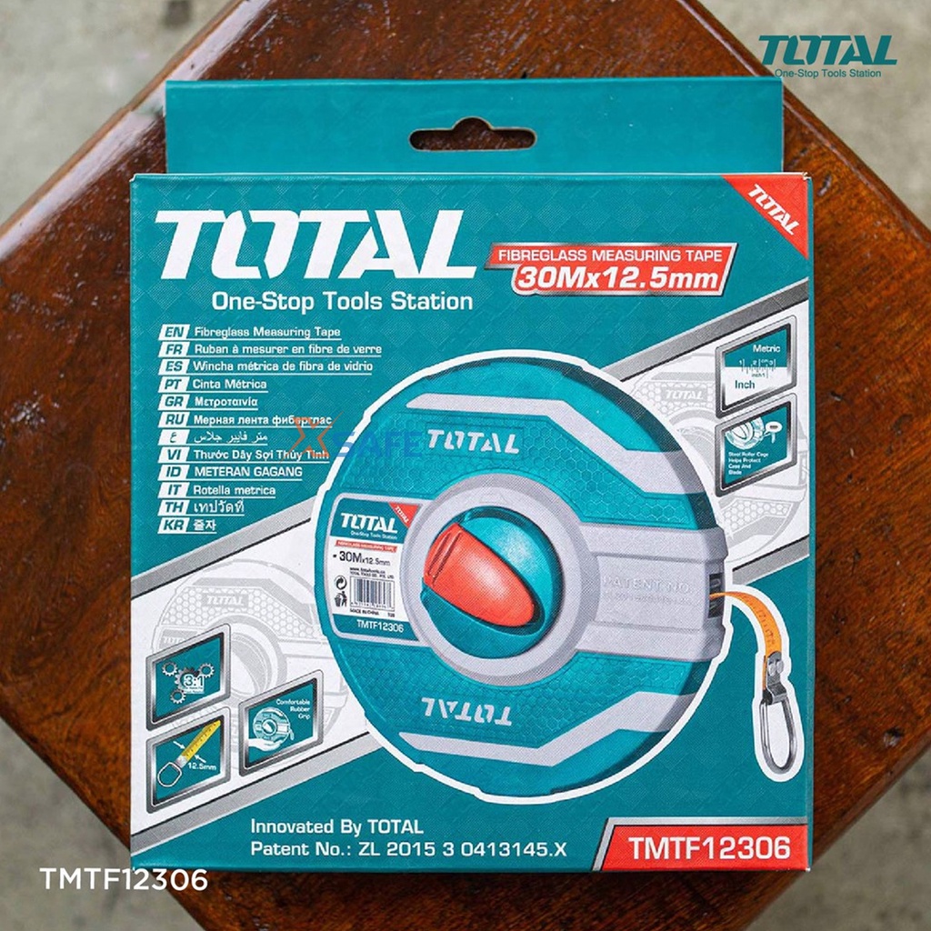 Giới thiệu Thước dây cuộn sợi thủy tinh TOTAL 20-30mx12.5mm, thước cuốn đa năng vỏ nhựa ABS bọc cao su siêu bền, tốc độ cuốn nhanh