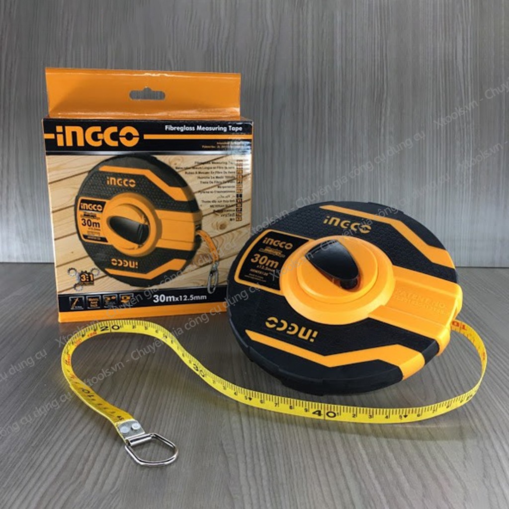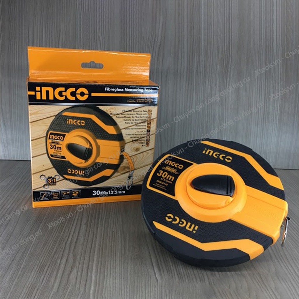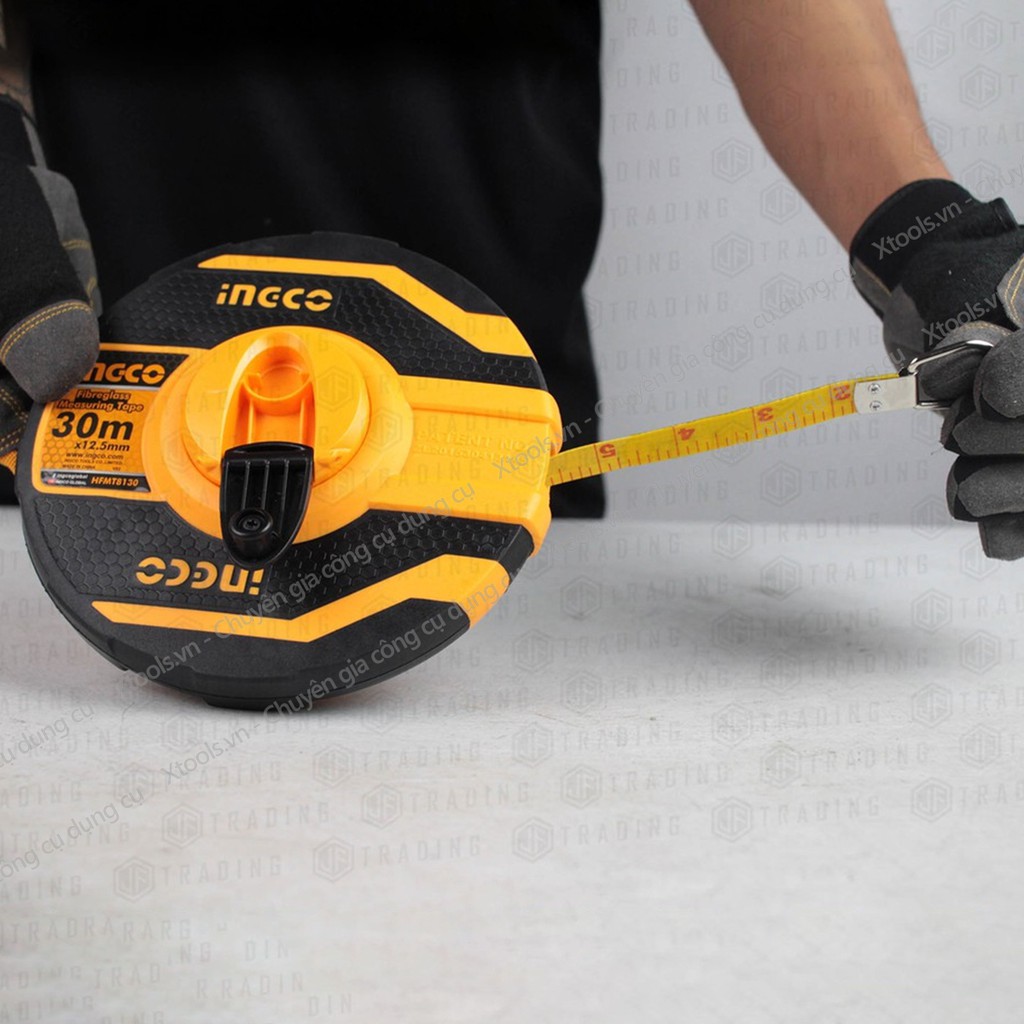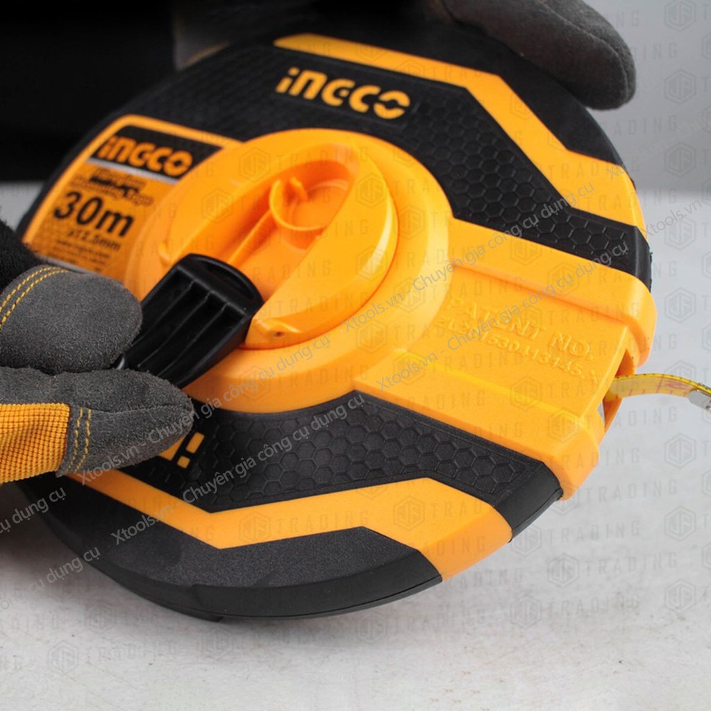 Thước dây cuộn sợi thủy tinh INGCO 20-30mx12.5mm, thước cuốn đa năng vỏ nhựa ABS bọc cao su siêu bền, tốc độ cuốn nhanh