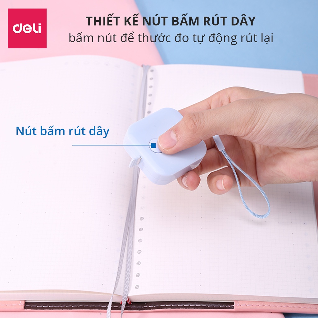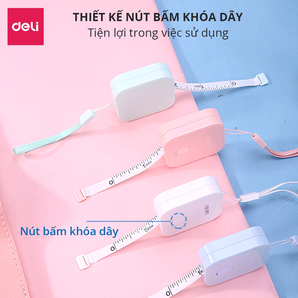 Nhà cửa & Đời sống > Dụng cụ & Thiết bị tiện ích > Dụng cụ > Dụng cụ đo lường || Thước dây da cuộn Deli - 1.5m - Hồng/ Xanh Lá/ Trắng/ Xanh Dương - 1 chiếc - 79650Còn hàng